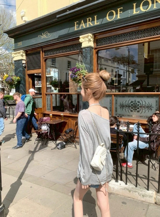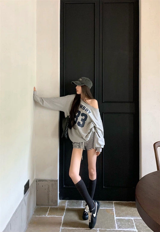 25Jul. 日常鬆弛感斜肩撞色字母衛衣 灰
