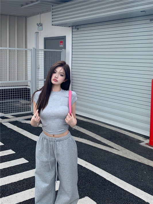 May. 清爽公式 簡約慵懶美式緊身上衣 鬆緊抽繩棉褲 灰
