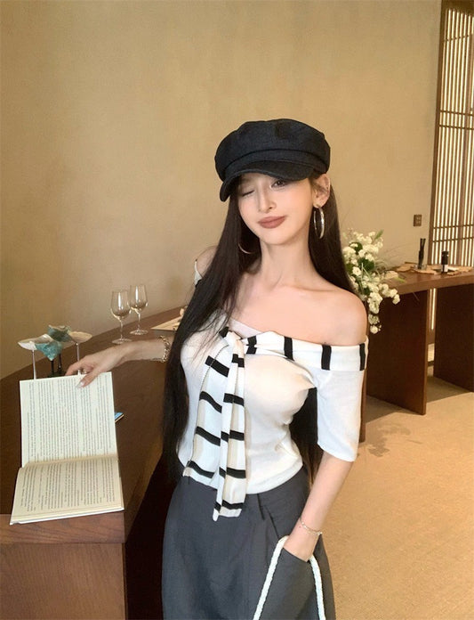 25Oct. 純慾入侵 顯瘦一字肩短款上衣 白