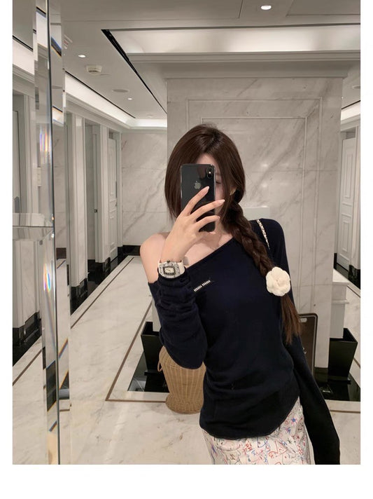 Apr. 元氣m1u女孩 兩穿斜肩針織上衣 藏藍