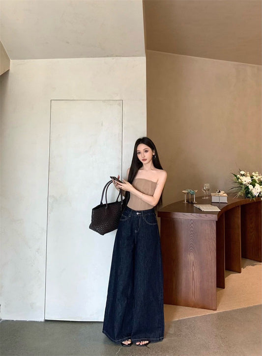 Jun. 古典攻略 魚骨曲線修身抹胸 卡 遮胯寬顯瘦高腰牛仔褲