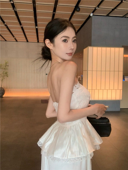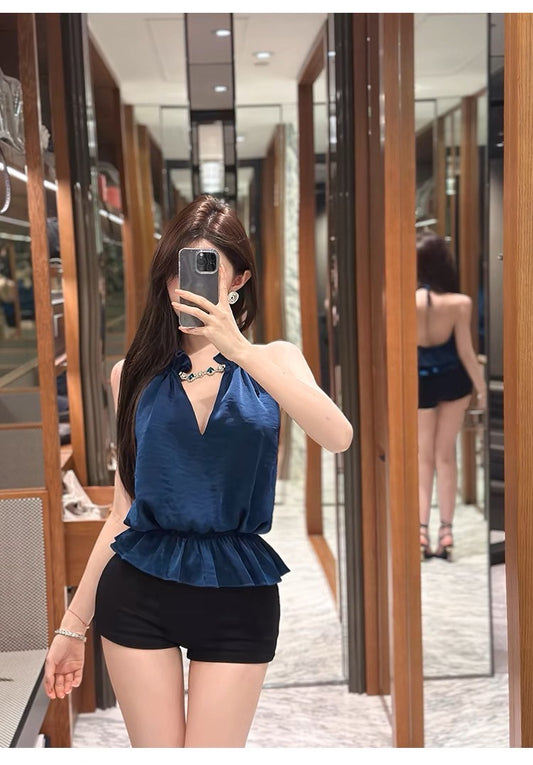 May. 琴酒小蒼蘭 珠寶緞面挖背收擺上衣
