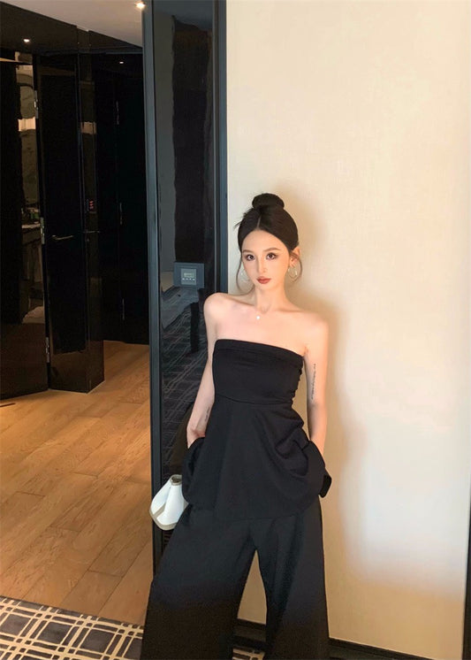 25Nov. 法式輕奢感收腰抹胸 高腰闊腿褲 黑