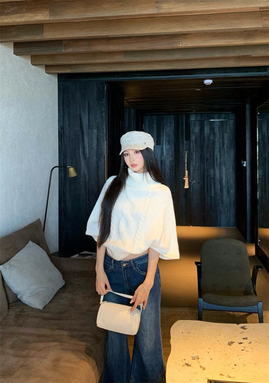 25Nov. 輕盈羊絨法式斗篷針織慵懶上衣 白