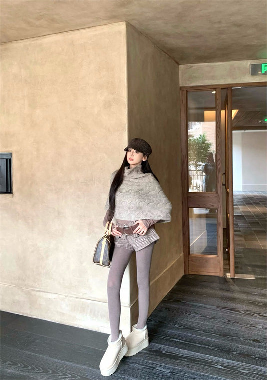 25Dec. 斗篷均碼多用法式花紗針織/英格蘭復古格紋短褲 灰色系