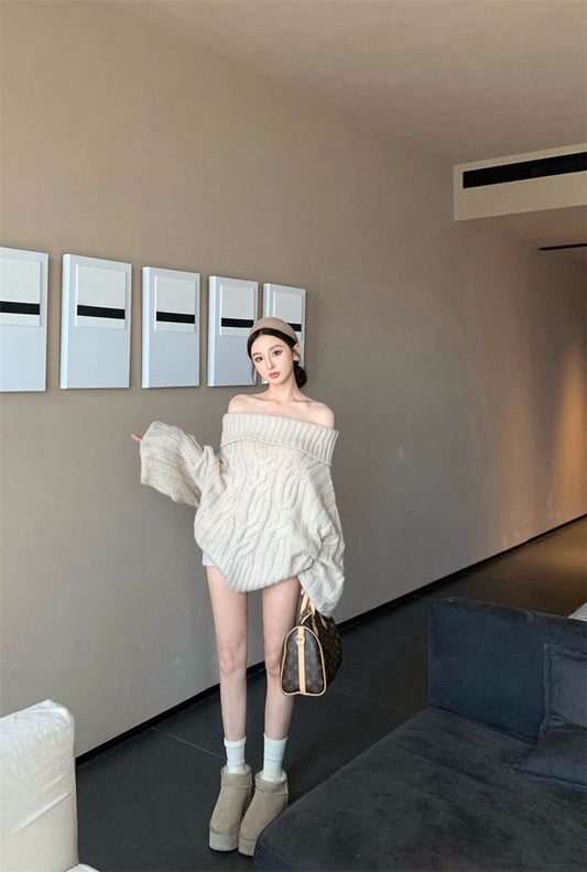 25Dec. Romantic慵懶純慾vibe一字領麻花針織上衣 卡