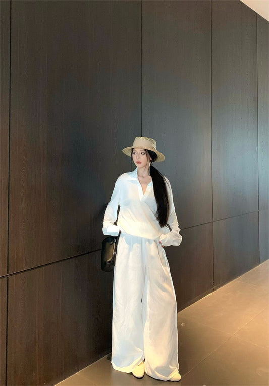 25Nov. 老錢慵懶白色系列v領上衣 同色系休閒褲