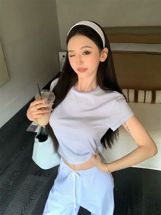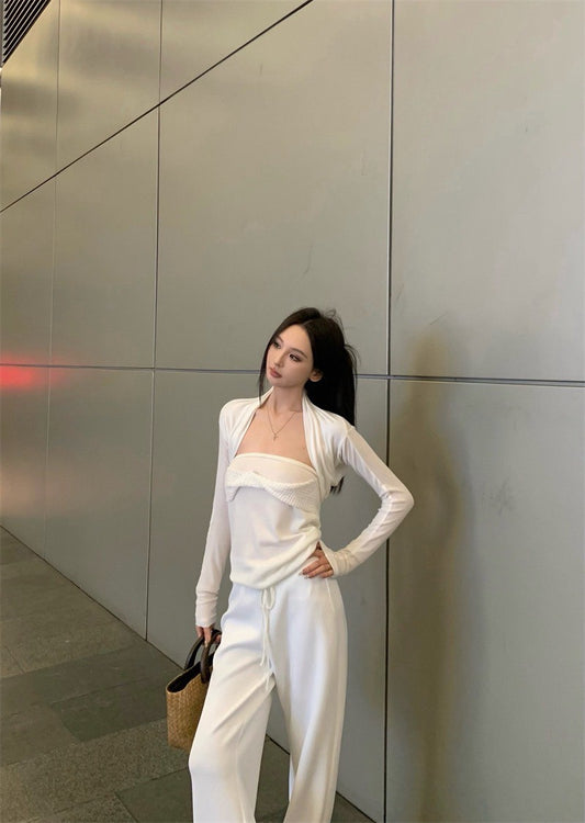 25Jul. 休閒生活 純色三色選簡約抹胸修身開襟 抽繩休閒褲 白/灰