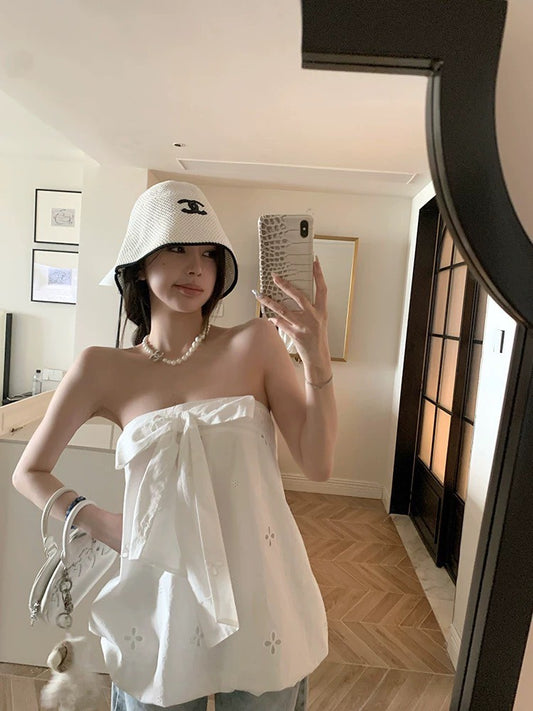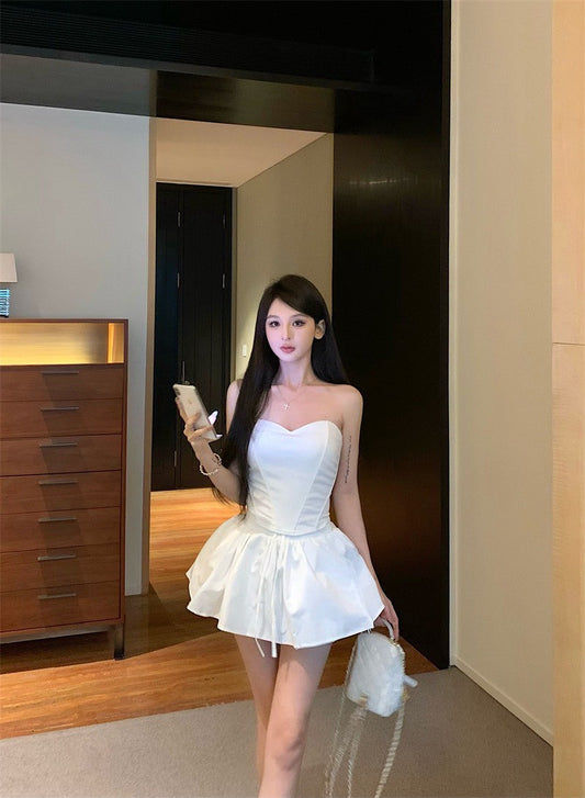 25Jul. 法式少女 修身魚骨抹胸 花苞半身裙 白