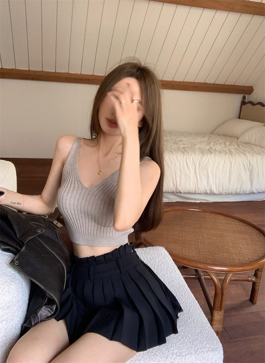 25Jul. 復古辣妹休閒搭針織背心 高腰百褶裙