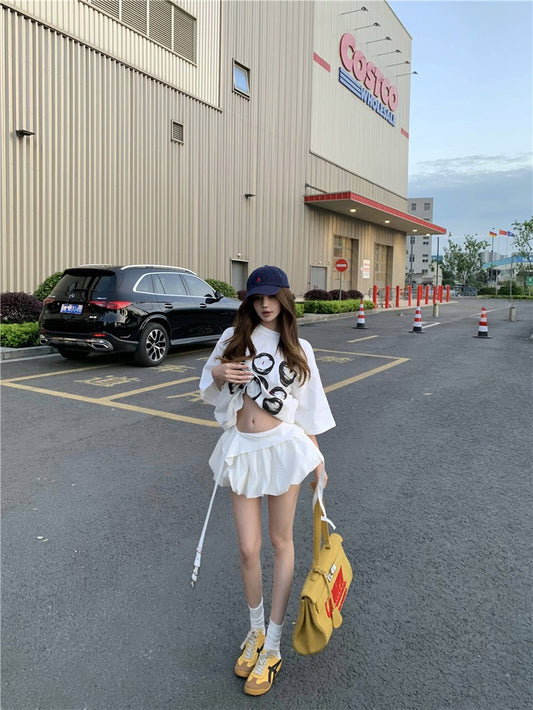 Jun. 初階芭蕾花苞蓬蓬半身裙 美式印花寬鬆上衣