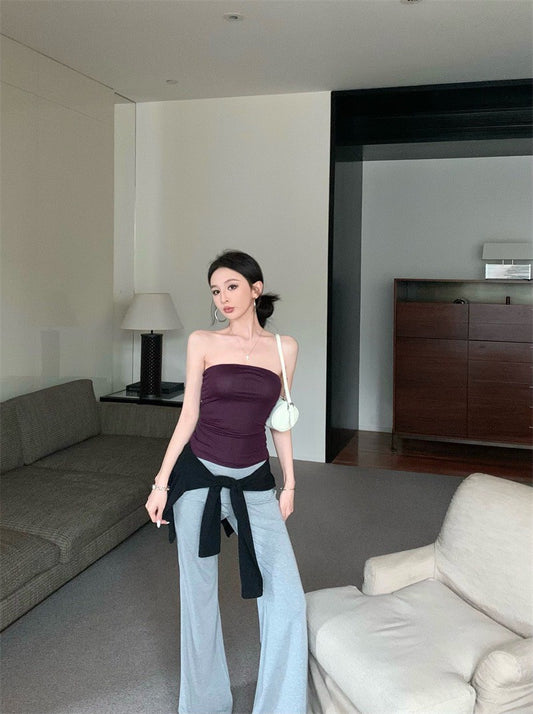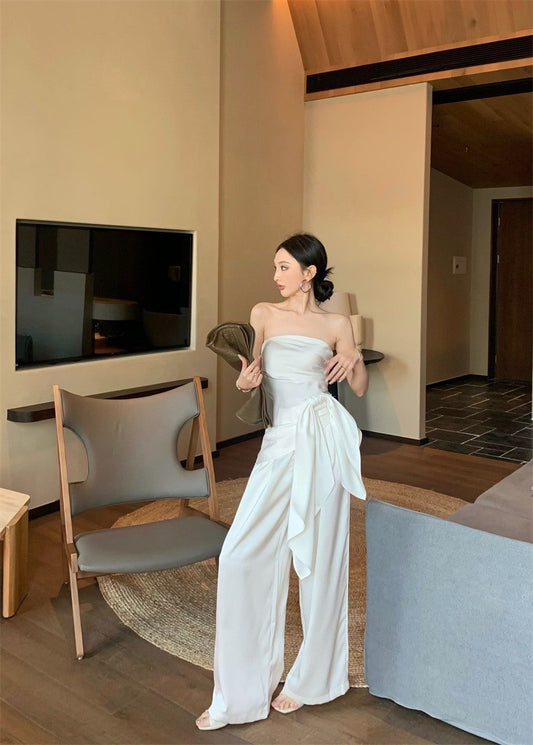 May. 米蘭假期 優雅可拆絲帶抹胸 休閒闊腿褲 白