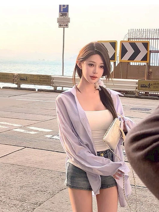 Jun. 黑色排扣防曬開衫 雲感面膜抹胸 紫/灰