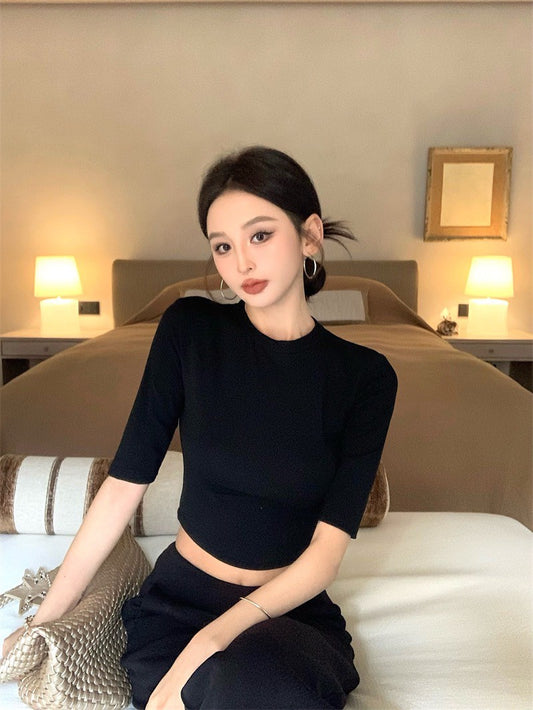 Jun. 萬能基礎公式 美式緊身短袖上衣 灰/黑