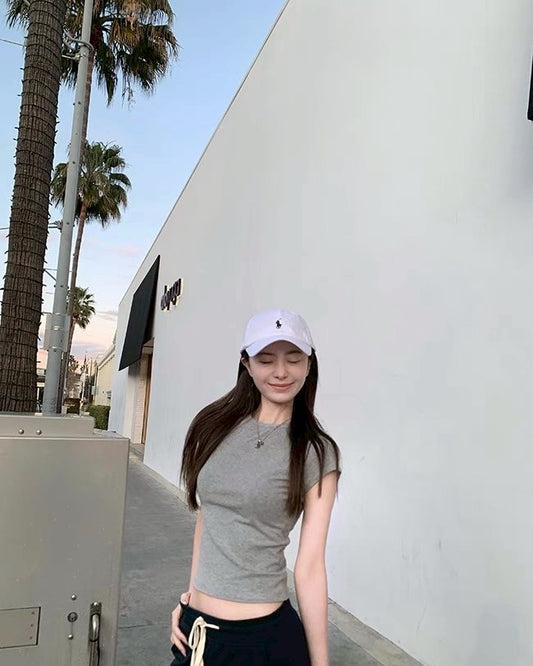 May. 美式百搭 經典正肩修身圓領純色上衣 灰/白/黑
