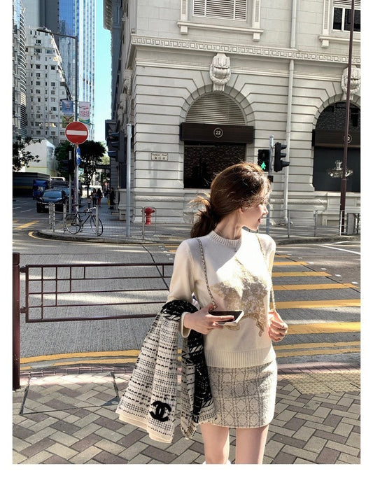 Feb. 時髦三件套 清冷感美人針織上衣半身裙 奶杏