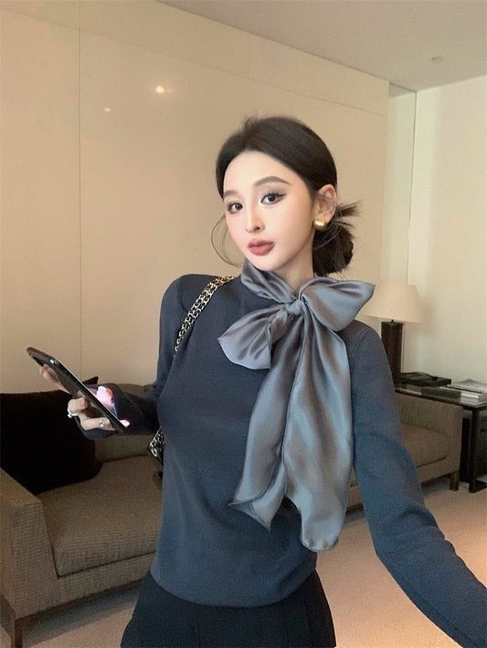 Feb. 內搭高手 綁帶蝴蝶領純色長袖上衣 灰