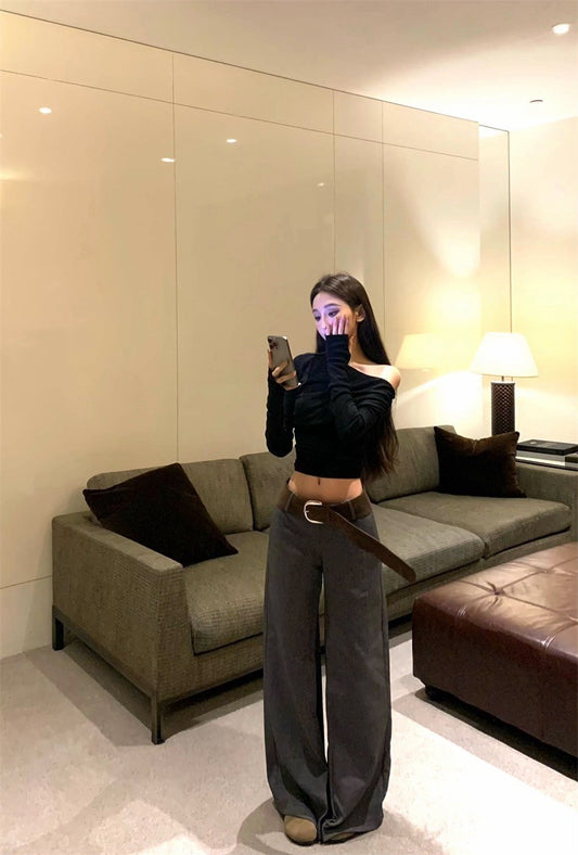 Apr. 美式慵懶 松露黑針織不規則上衣 短褲