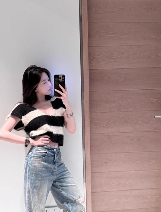 Apr. 嫩妹天菜 多色多囤!桃心領性感短袖上衣 藏藍/灰色