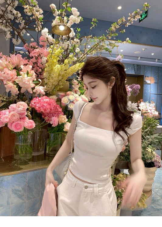 25Aug. 版型狠搭純欲姐姐後背縷空拼接上衣 白
