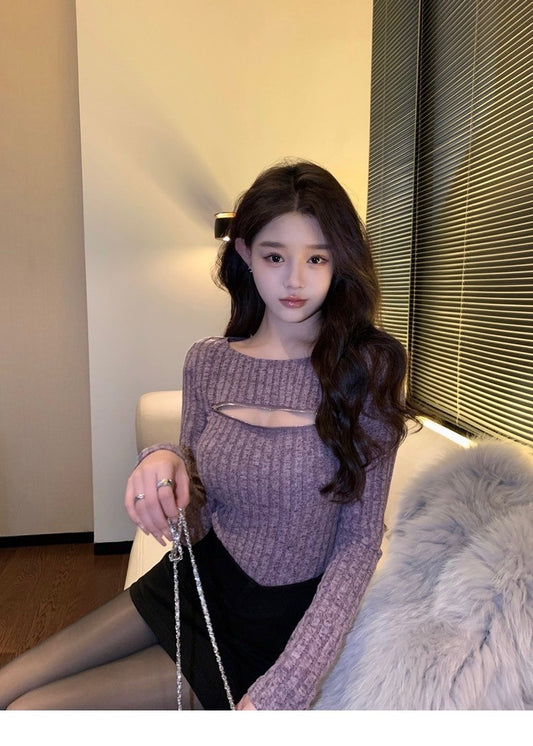 Jan. 心機辣女 拉鏈軟毛感針織上衣 新色紫