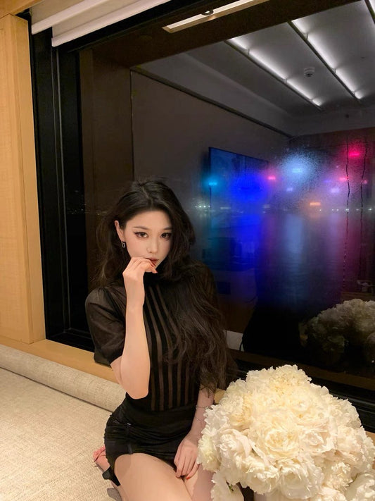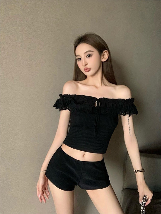 25Nov. 純慾辣妹一字領縷空修身上衣 黑