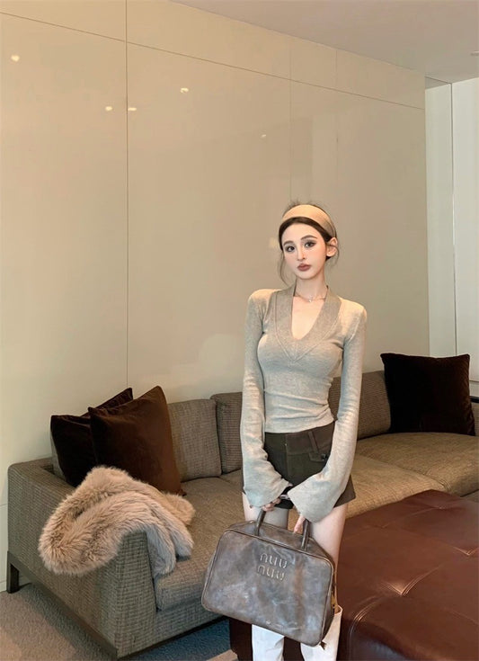 Feb. 極致身材 深V領顯瘦彈力上衣 卡