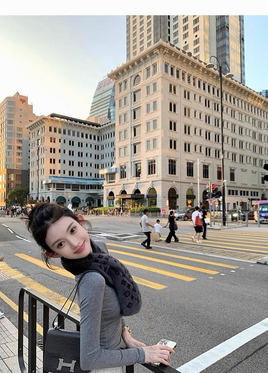 25Dec. 黃金C位軟羊絨圓領緊身T恤 灰