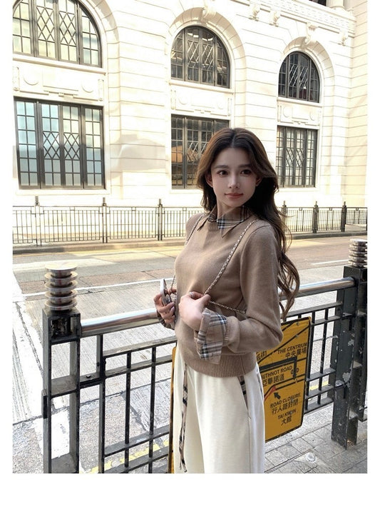 Jan. 柏林記事 老錢定製格紋假兩件式針織上衣 咖