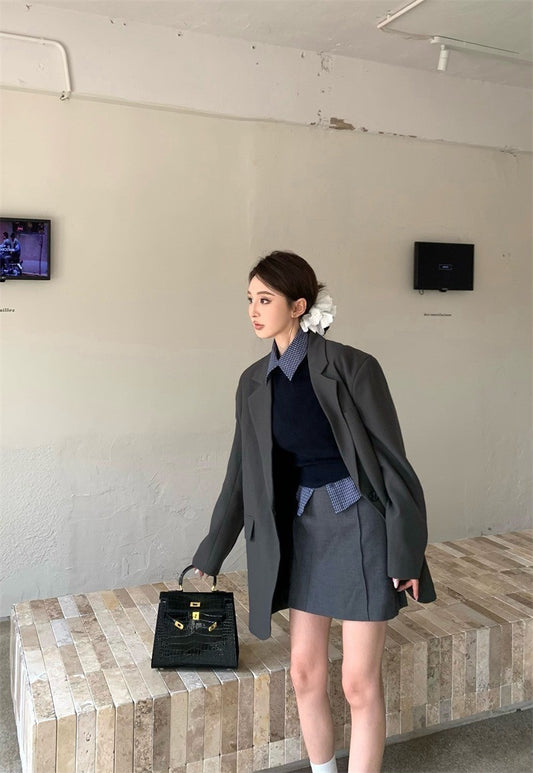 Oct. 設計學院 復古英倫疊穿黑色針織 格紋襯衫