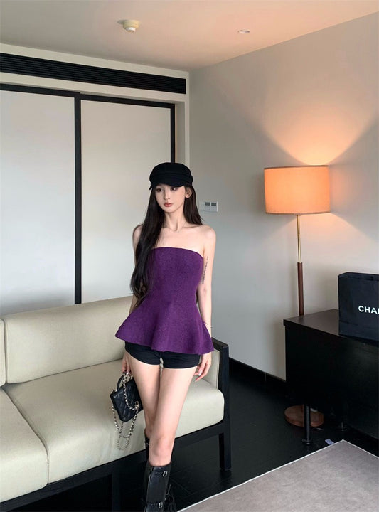 25Nov. 曲線奧斯氣質針織花瓣抹胸 紫