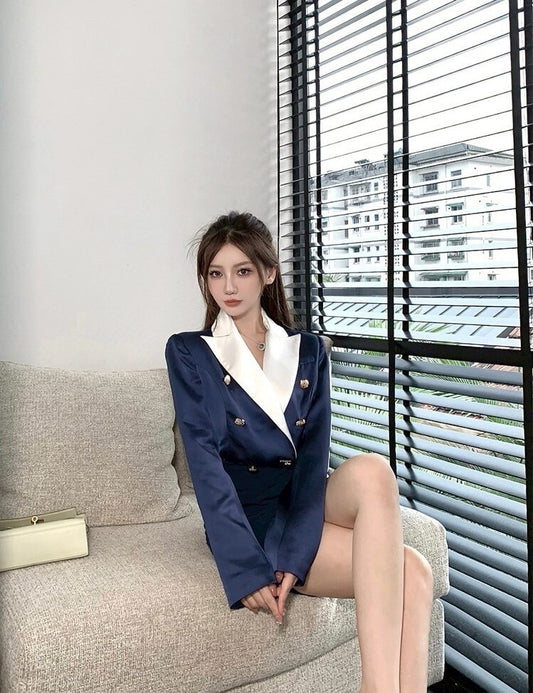 25Sep. 韓國鄉園亮絲奢彩中袖小香外套 藍/綠