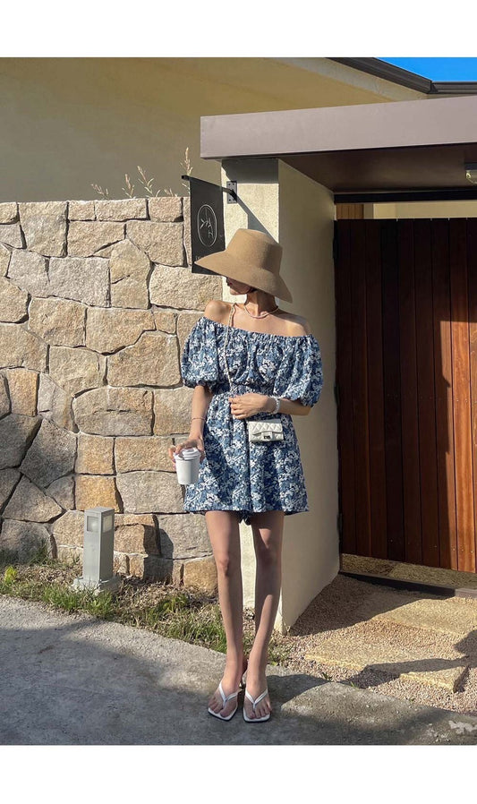 25Sep. 清新藍色碎花收腰兩穿洋裝