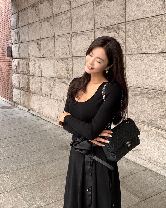 25Sep. 率性女爵顯瘦方領黑色赫本裙
