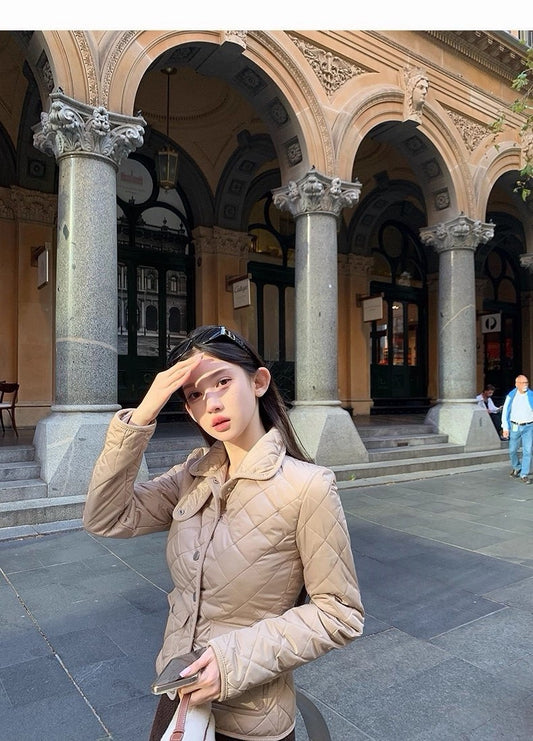 25Dec. Rha1*老錢菱格紋收腰羽絨外套 卡其