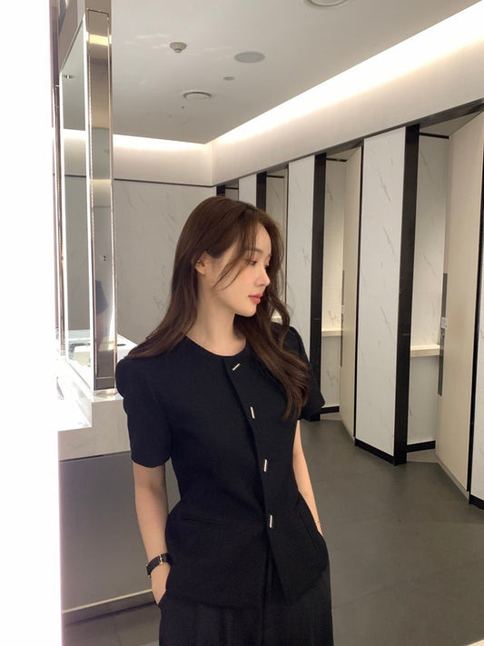 Aug. 職業通勤百搭簡約圓領修身外套 黑色