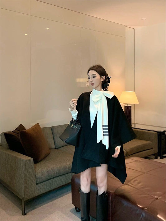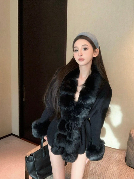Jan. 財閥千金 披肩毛毛針織修身外套 黑