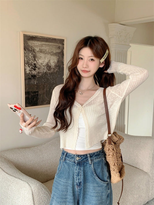 Aug. 優雅鉤花套組 針織縷空百搭防曬兩件組 白/黑