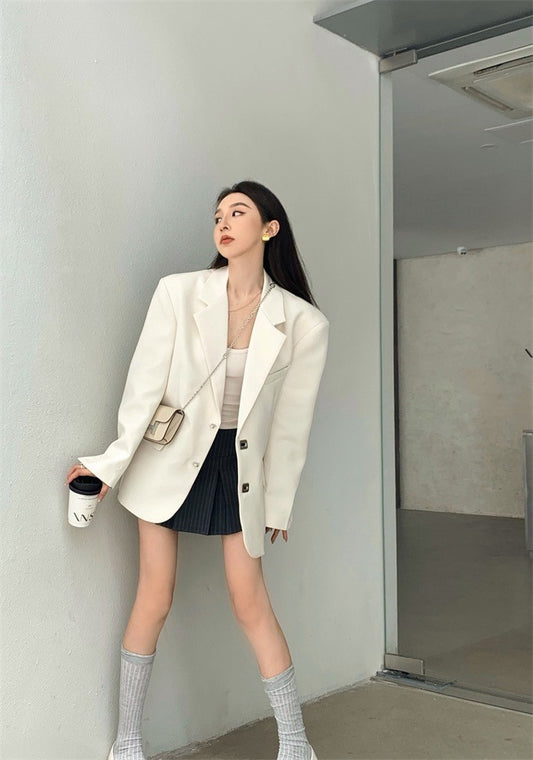 Aug. OVERSIZE百搭墊肩西裝外套 白/黑