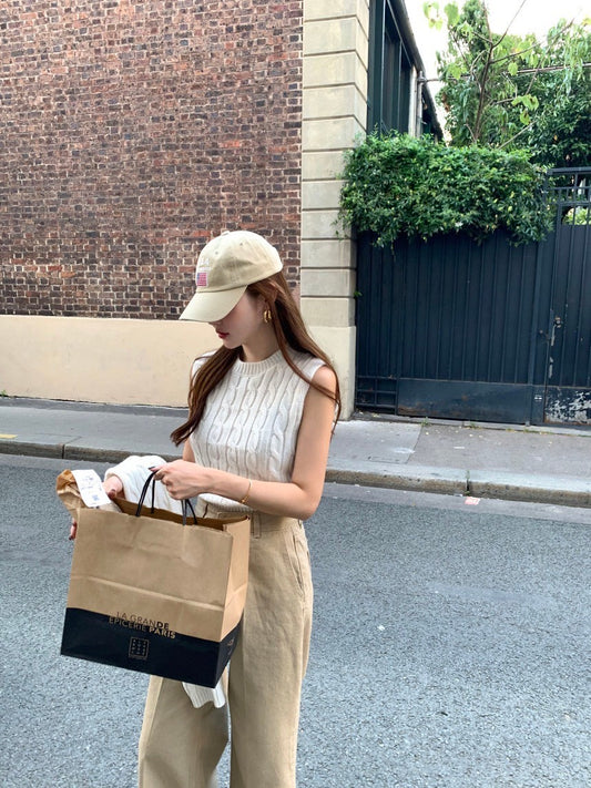Aug. 初秋 復古麻花編織針織背心外套兩件組 白