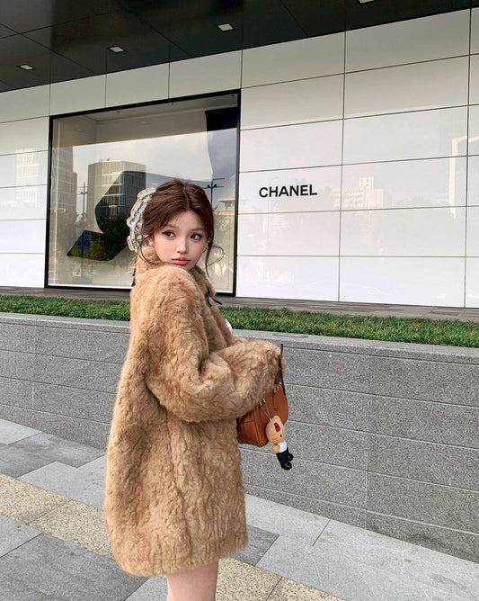 25Dec. Teddy熊毛毛韓系柔軟寬鬆外套 泰迪棕/灰