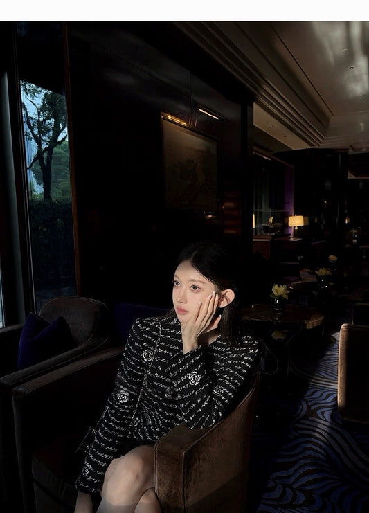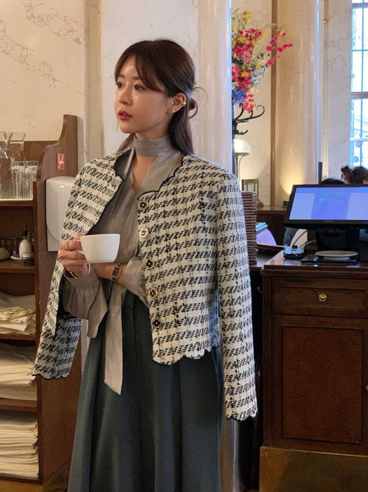 Sep. 韓女通勤百搭 波浪粗呢織感修身外套 經典黑白