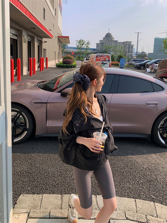 Jun. 美式寬鬆輕薄防曬連帽工裝外套 黑色