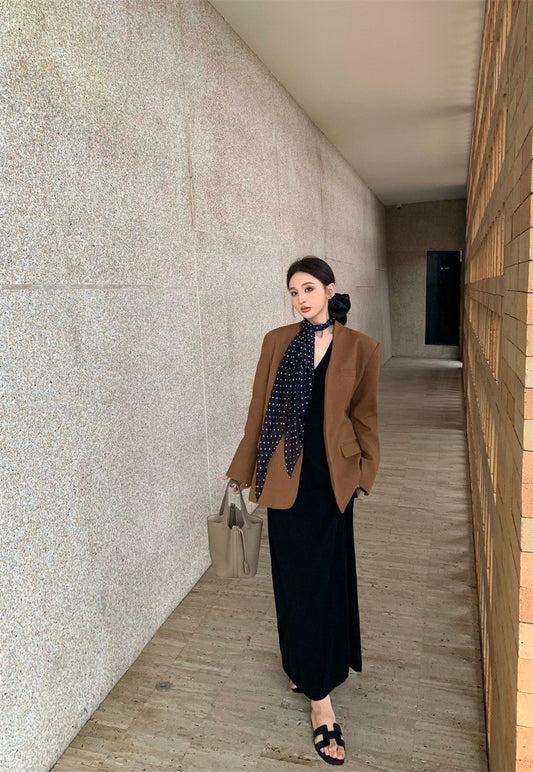 Dec. 職業往來 復古收領廓形西裝外套 V領收腰連身裙