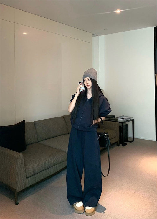 25Jul. 美式休閒 不規則拉鍊立領外套 黑色休閒褲