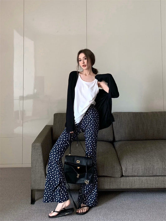 25Jul. 百搭王 休閒私服白色背心 碎花喇叭褲