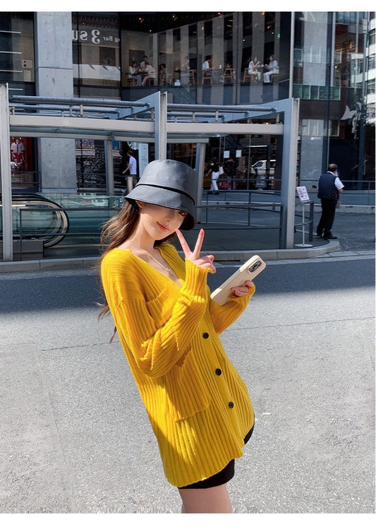 Oct. CHILL芭菲黃 V領針織外套