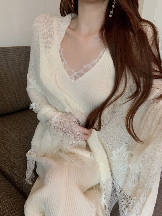 May. 時髦女人 蕾絲花邊排扣開衫 2色 性感蕾絲打底背心