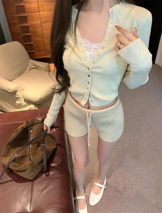 25Jul. 奶油居家 鈕扣針織開衫 針織短褲