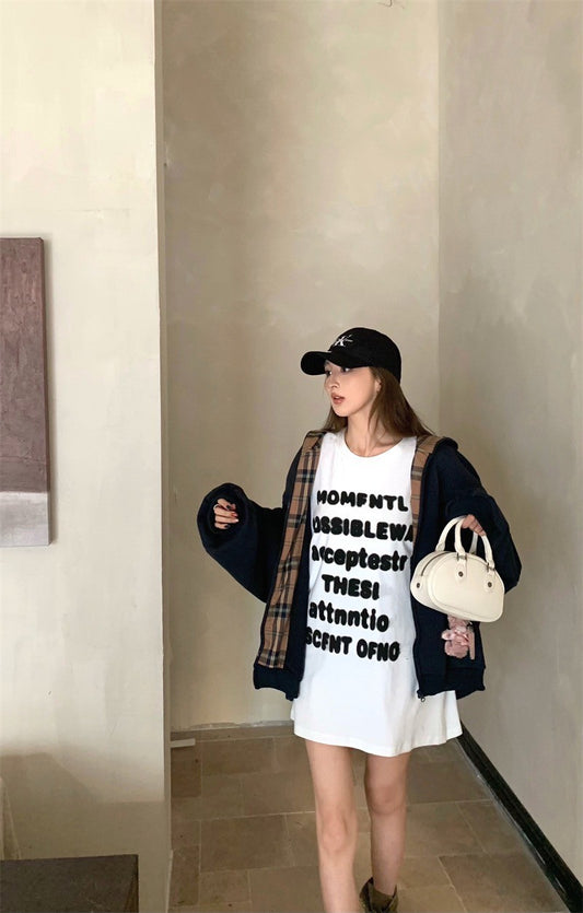 25Jul. 休閒時髦精 格紋拼接連帽外套 藏藍